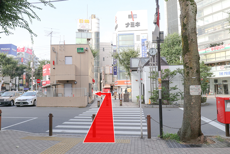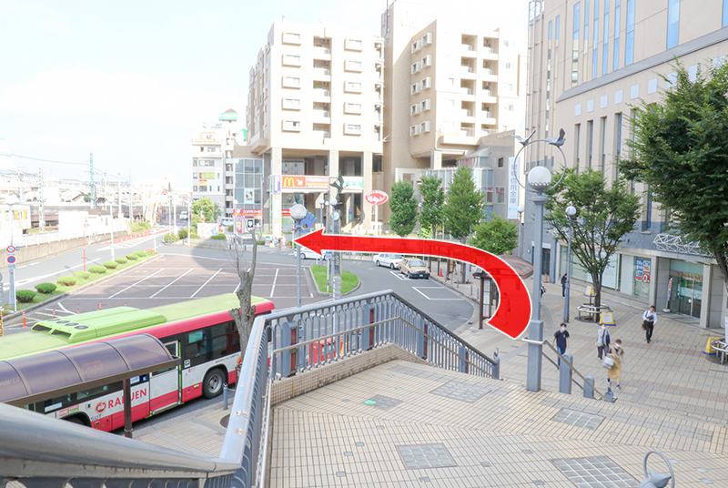 バスロータリー中央の交番を過ぎて突き当たりで左に曲がってください