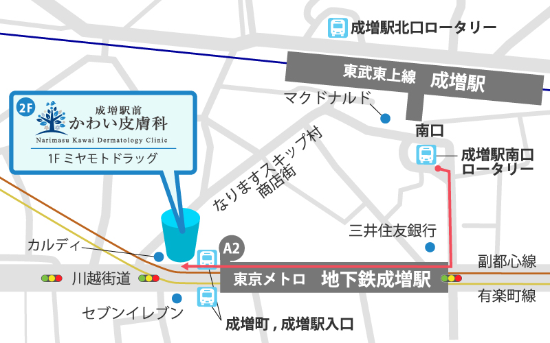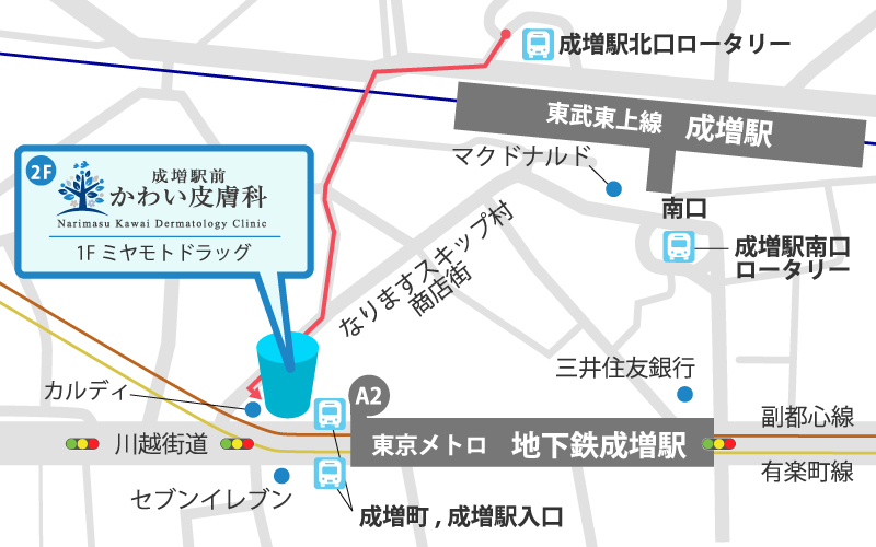 (1)東京メトロ有楽町線・副都心線の場合は「地下鉄成増駅」で下車しこちらのルートでお越し下さい。