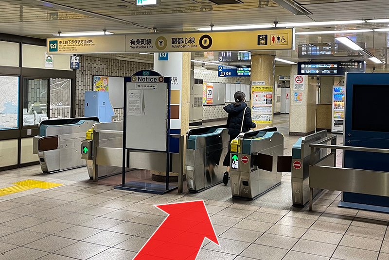 駅に入り右手側に改札が見えます。改札に入り東京メトロ有楽町線・副都心線または東武東上線にご乗車ください。