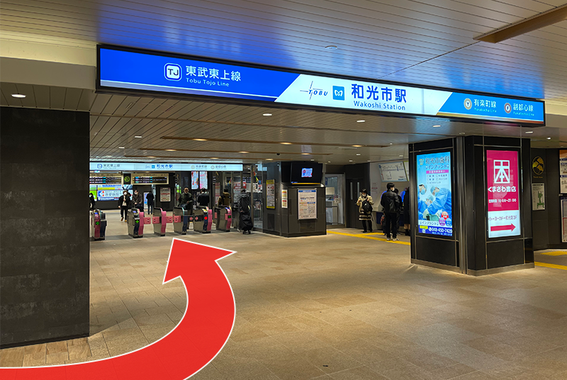 駅に入り左手側に改札が見えます。改札に入り東京メトロ有楽町線・副都心線または東武東上線にご乗車ください。